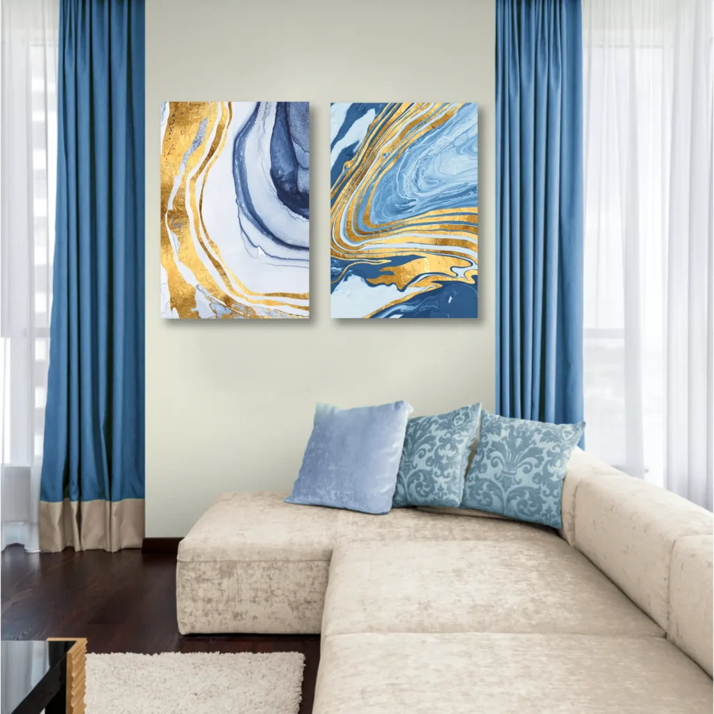 Description : Set de tableaux décoratifs de haute qualité, entièrement fabriqués au Maroc. Impressions produites avec les meilleurs matériaux. Deux matériaux disponibles : Standard (Bâche enduite) et Premium (Toile artistique Canvas). Livré avec des crochets pour une installation facile sans clous ni vis. Livraison : Rapide, 2 à 5 jours.